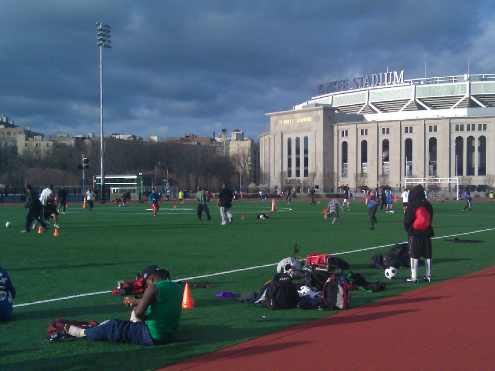 What do fellow Melrose residents do when the weather is this warm? We head to the parks of course! The new track and field next to the old Yankee Stadium offers a great place to run, play soccer or just sit a spell…but it isn't even complete yet and there is still work to be done to bring the basketball and handball courts online.